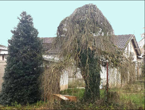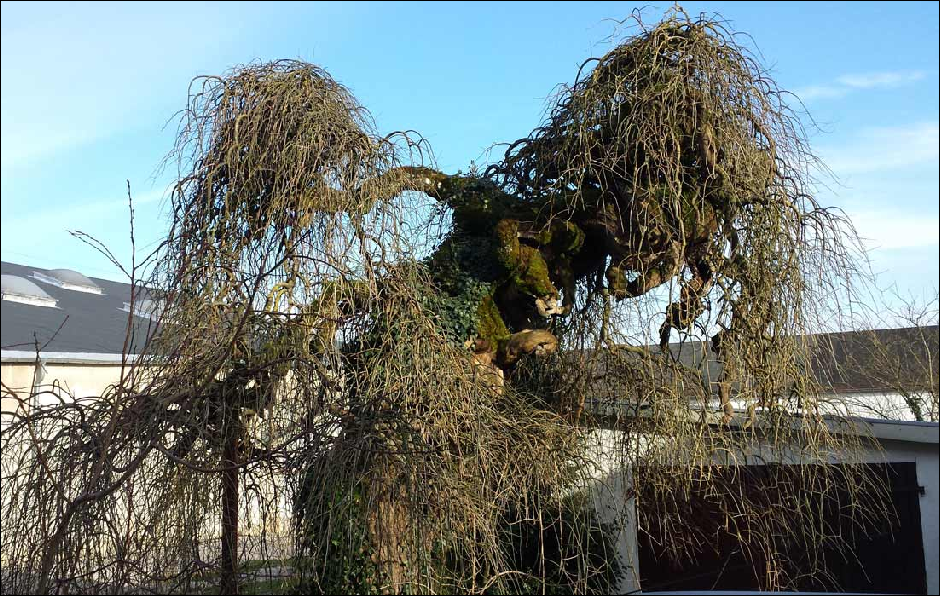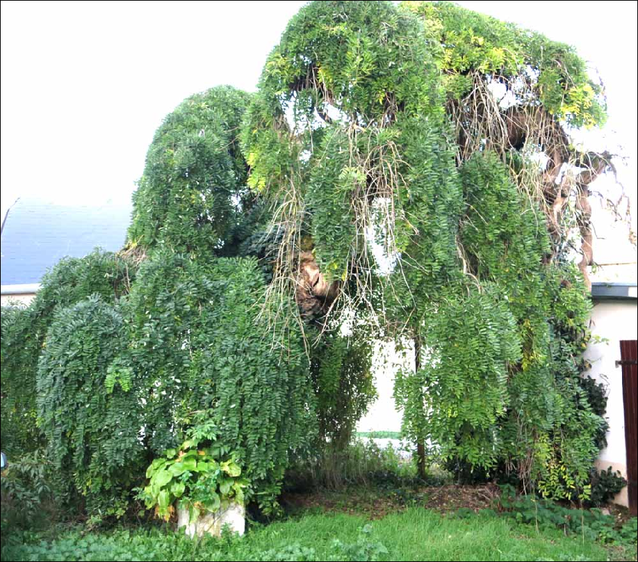 Le Sophora pleureur (ici en hiver), peut être bien planté par Napoléon autour de 1789 (propriété privée)