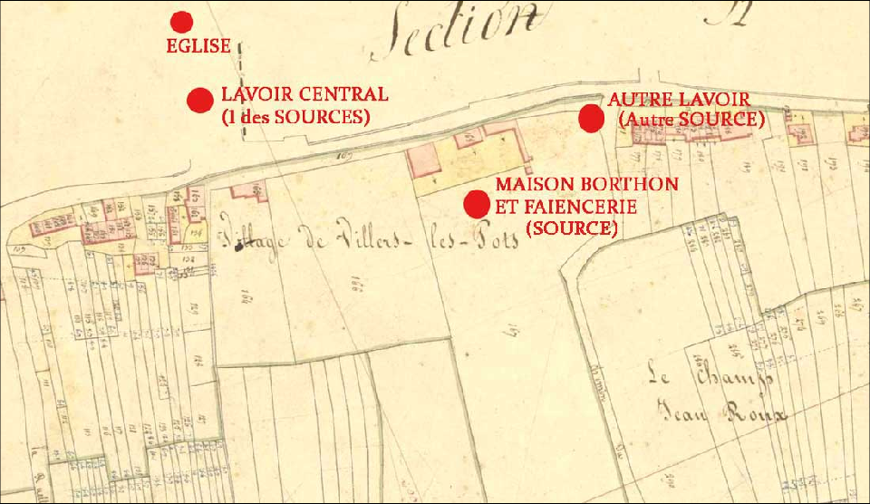Le cadastre actuel de Villers les Pots correspondant à la faiencerie.