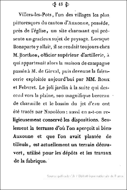 Le texte de Claude Pichard , ancien Maire d'Auxonne, en 1847