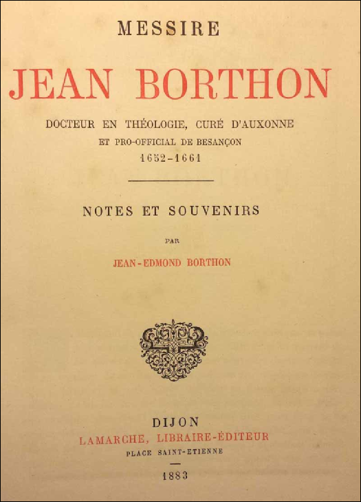 écrivait un ouvrage sur sa famille et son ancêtre Jean Borthon.