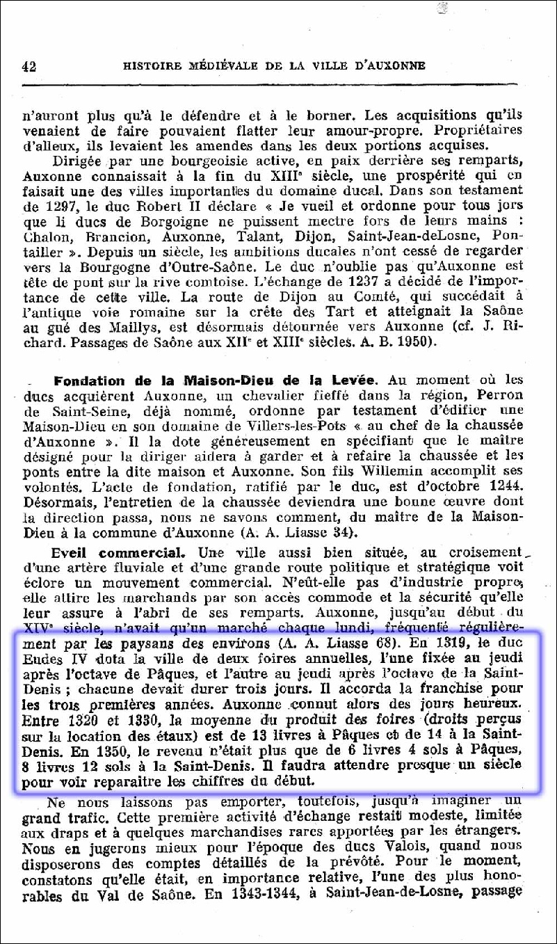la ville d’Auxonne de 2 foires annuelles,