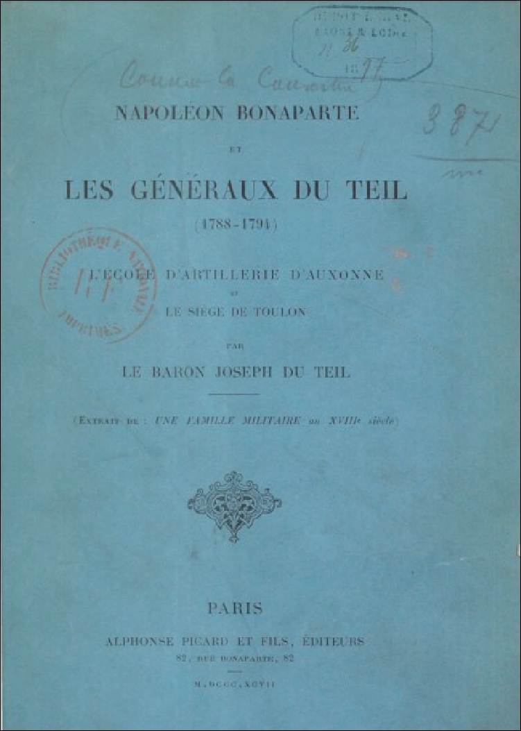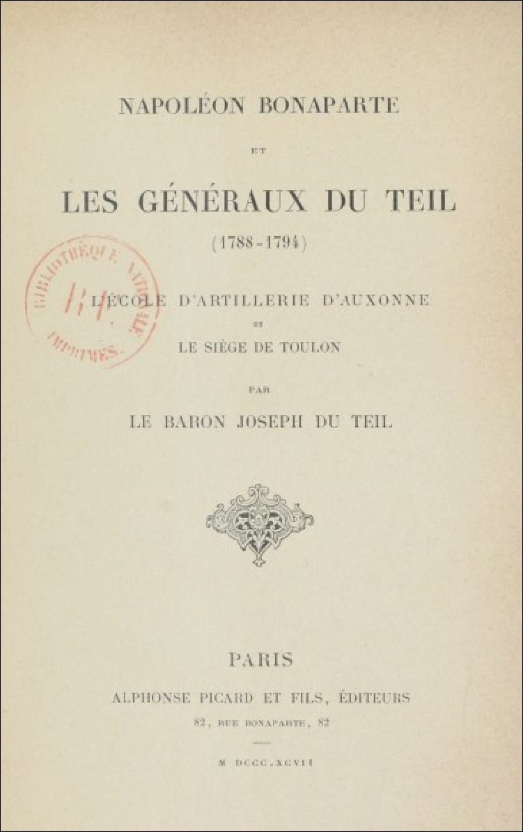 Extraits du livre :Napoléon Bonaparte et les généraux Du Teil (1788-1794), l'école d'artillerie d'Auxonne et le siège de Toulon Edition 1897